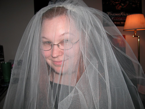 I made my own veil using a McCall's pattern. It involved a headband (with rhinestone daisies), some seam binding, and ivory illusion.