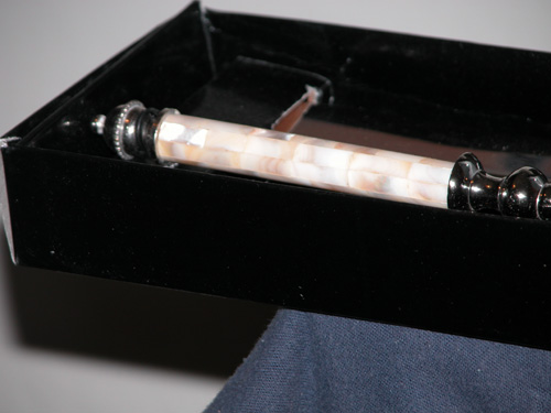 The pen was inexpensive, as I didn't see spending a lot of money for a pen that might be used once. The color was a very pale lilac and matched the type of flower that we hadall over (daisies). I thought it was pretty.